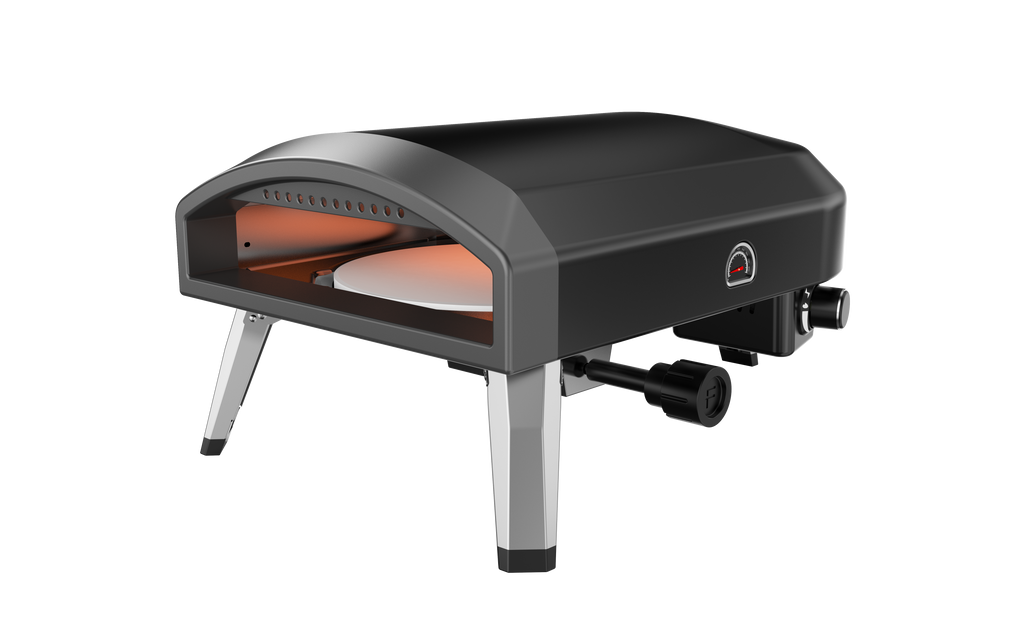 With rapid heating up to 500 – 550 °C, it delivers the perfect combination of crispy crust and evenly melted toppings every time. The efficient stainless-steel burner system ensures consistent heat distribution, while the built-in ignition makes lighting simple and safe.