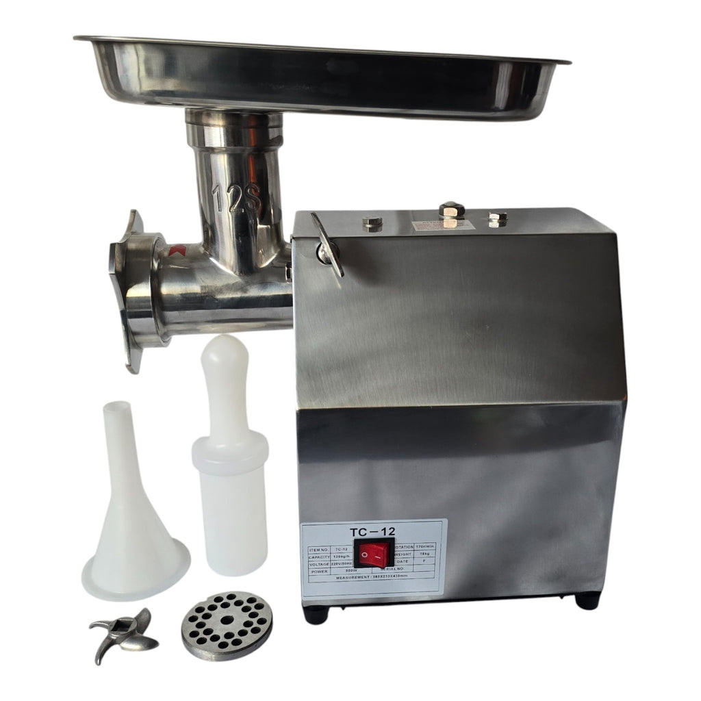 Handle larger volumes of meat with ease using the TC12 Heavy Duty Meat Mincer Grinder by LPG Burners. Built with a tough 550W motor and premium stainless steel housing, this machine is ideal for both domestic and commercial kitchens needing high-capacity performance.