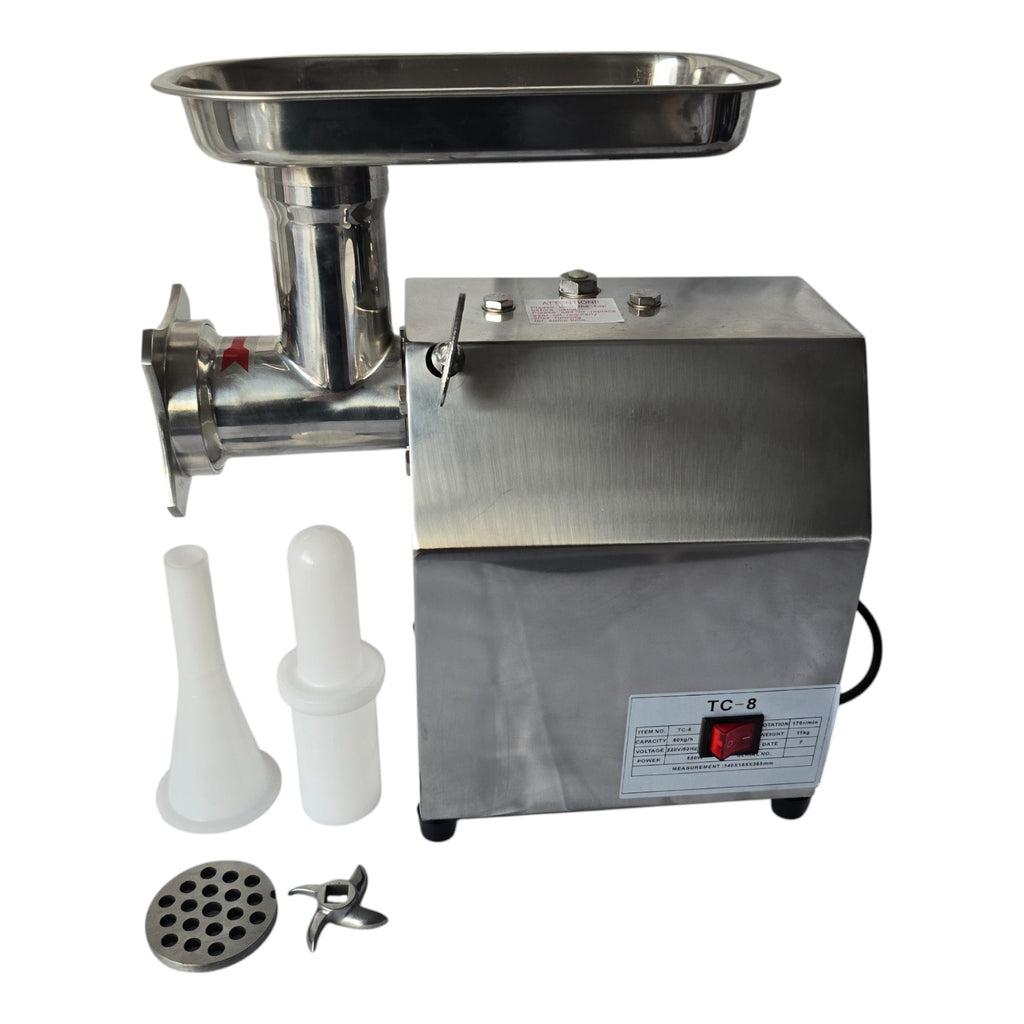 Powered by a robust 550W motor, the TC8 effortlessly grinds up to 80kg of meat per hour — making it ideal for batch prepping sausages, burgers, and mince. The durable stainless steel body not only looks sleek on any countertop but also offers superior hygiene and long-term durability.